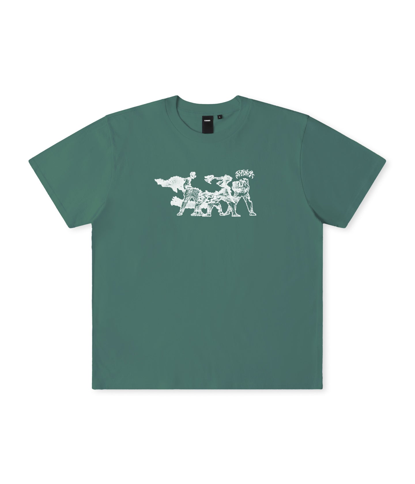 Crafted in a premium 200GSM jersey cotton and delivered in our standard FORMER T-shirt block for a relaxed and comfortable fit. Featuring a front graphic in a crackle screen print technique.