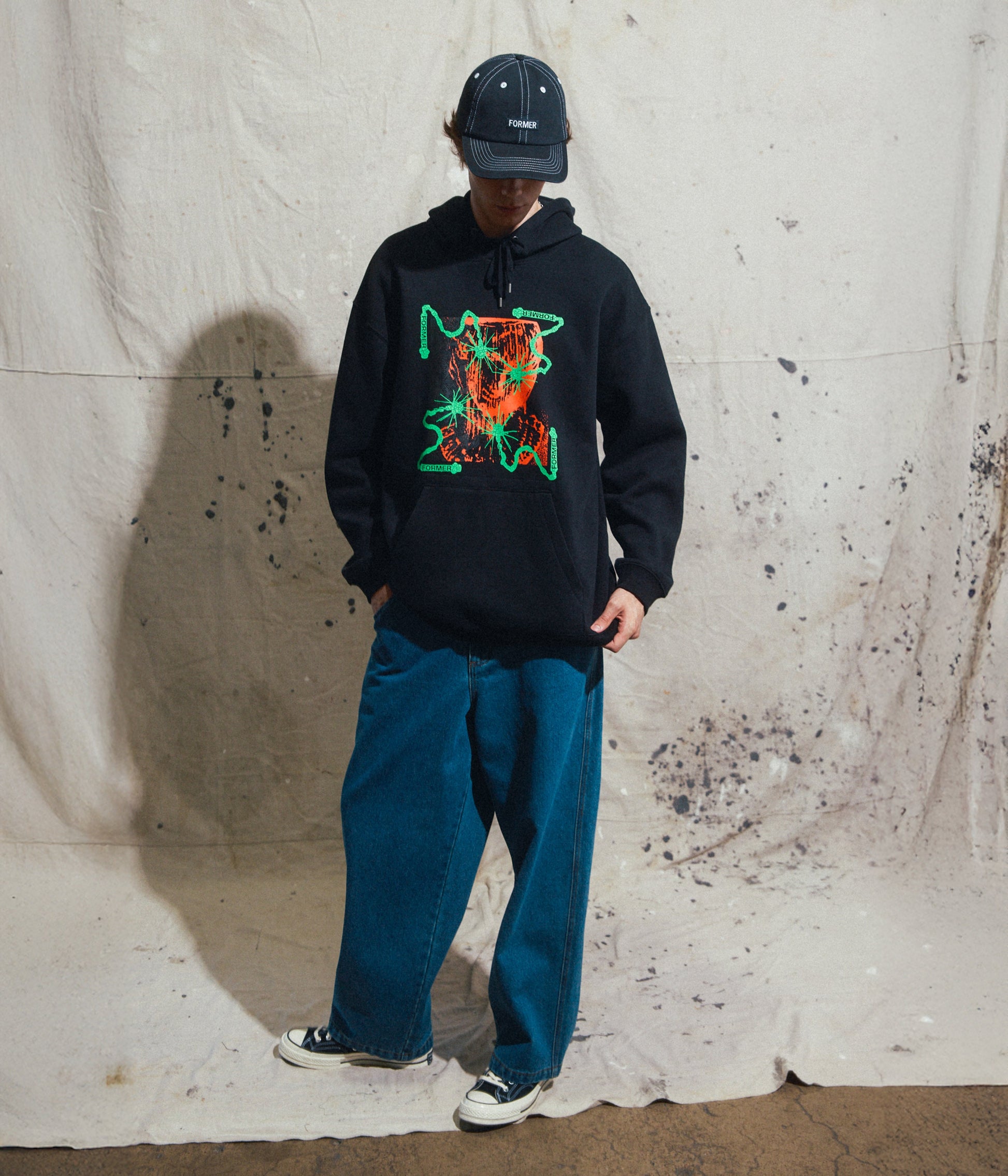 Designed in a premium 320GSM cotton faced brushed fleece with 50% cotton 50% polyester for warmth and comfort, and delivered in our standard FORMER hood fit. Featuring drawcord closure, front and back graphic embroidery, puff print & soft hand plastisol screen print, franchise F tonal embroidery on hood, front pocket, and FORMER branded metal aglets.