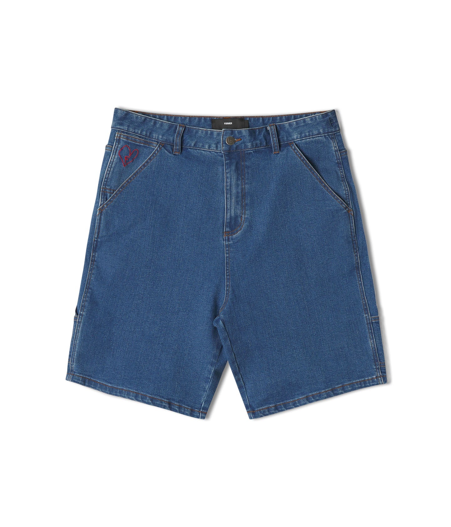 An updated execution of our Distend Walkshort, these workwear inspired walkshorts are crafted from a premium, heavyweight 12oz 99% cotton 1% elastane denim and delivered in a baggy fit and 20" leg length. Featuring carpenter pocket details, custom metal hardware, a leather patch, and Franchise F embroidery details.
