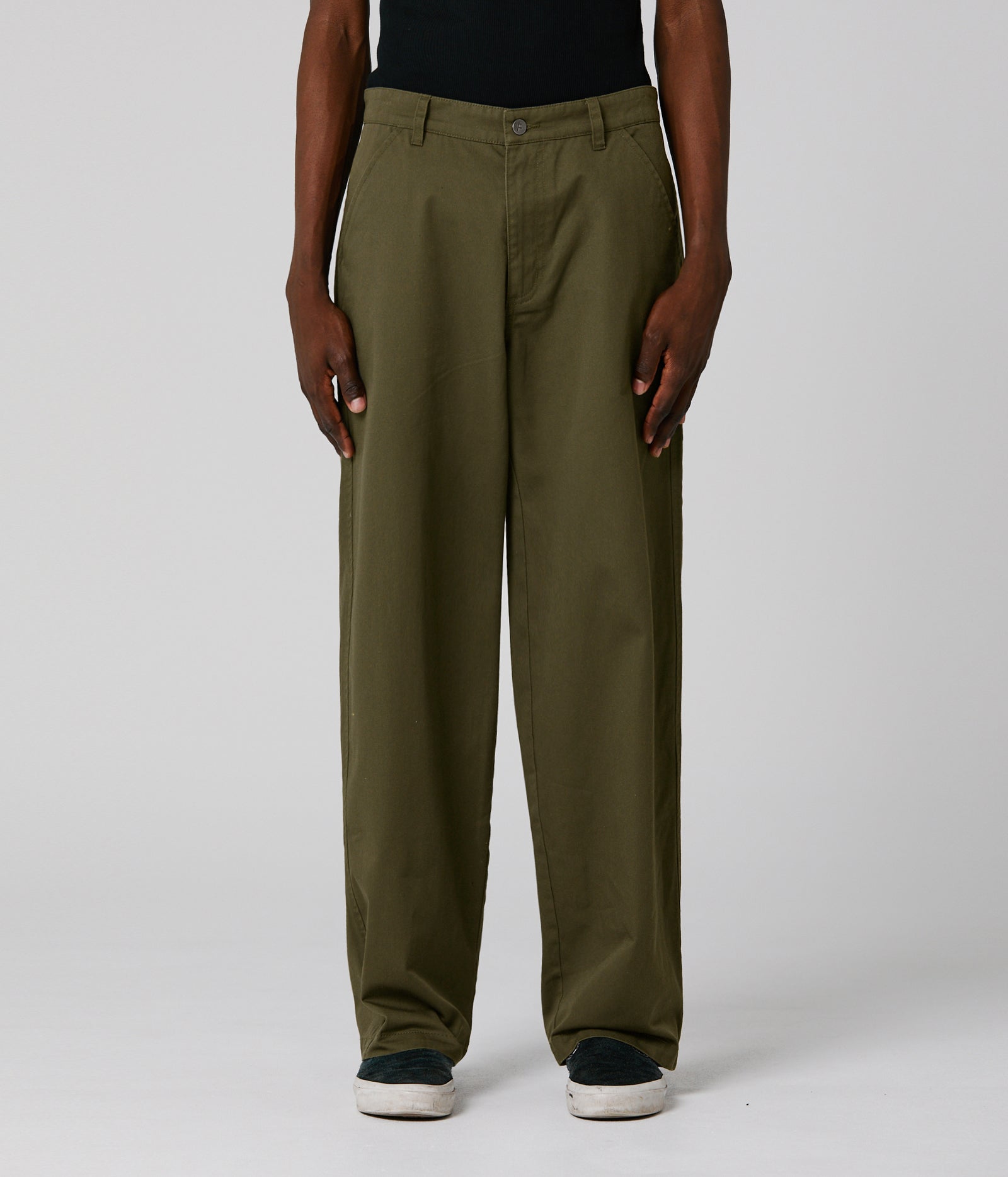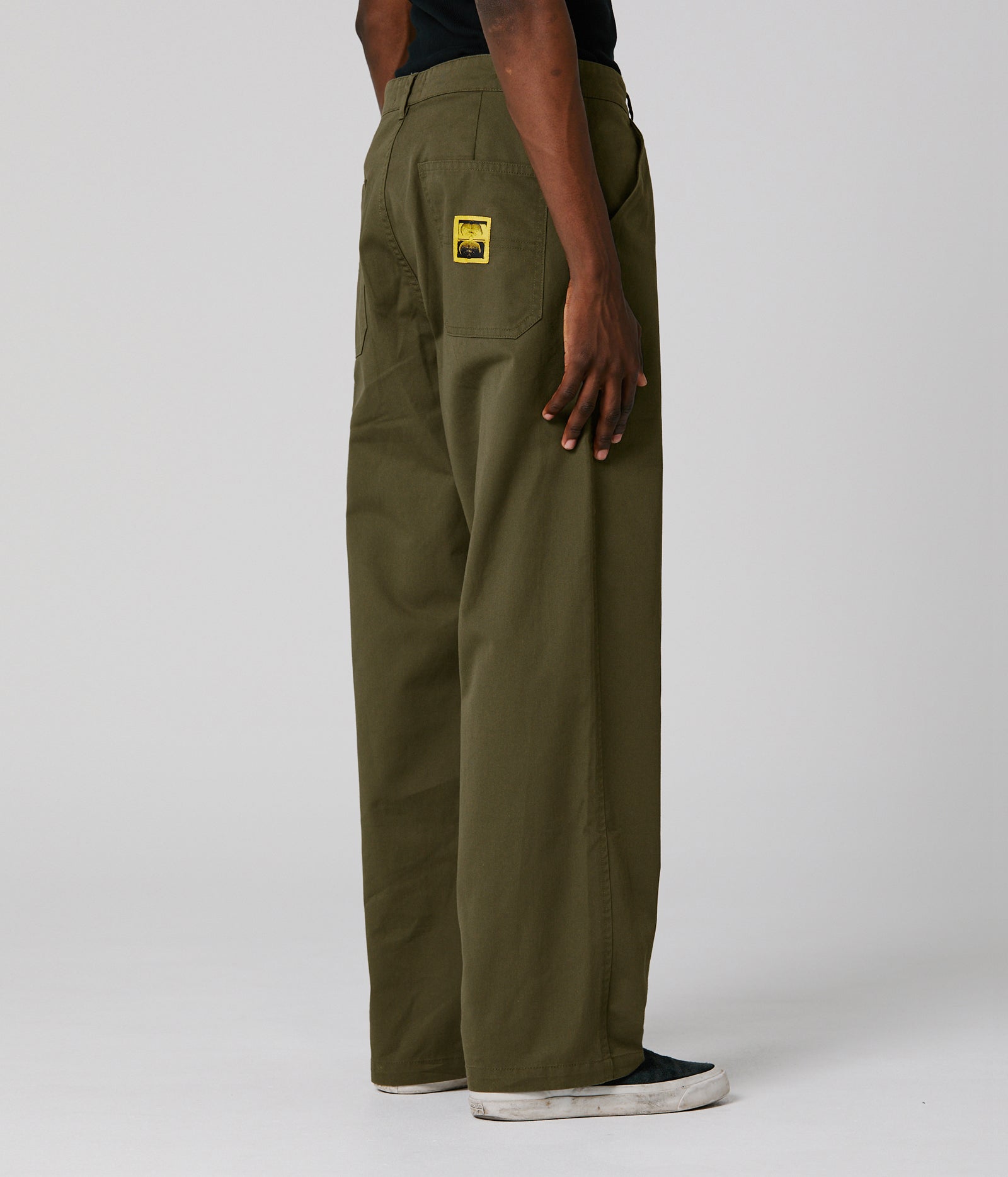 Designed by FORMER founder Dane Reynolds, the Reynolds Work Pant is our Baggiest pant with a wide silhouette and 19” leg opening. Constructed from a durable 100% cotton twill fabric, featuring a fixed waist, signature Crux logo woven label on back pocket, double workwear pockets, and FORMER branded metal shank button.