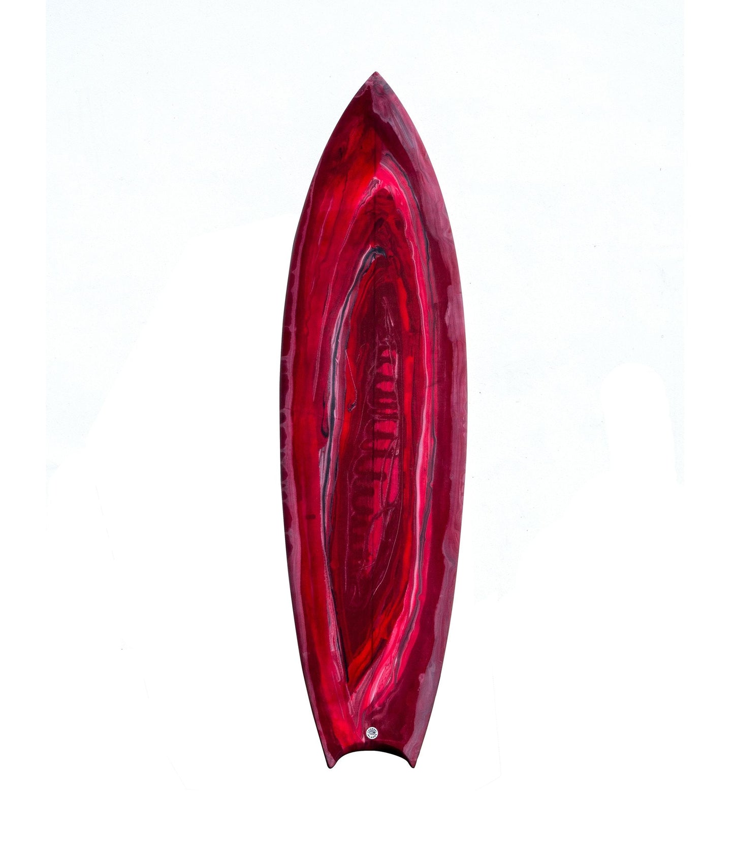 Developed in collaboration by Dane Reynolds and Captain Fin by modifying and shrinking the classic upright "MTF" (AMT) twin and then doubling the baby trailer while modifying the shape. It has a twin fin feel without the release at critical point of turn.