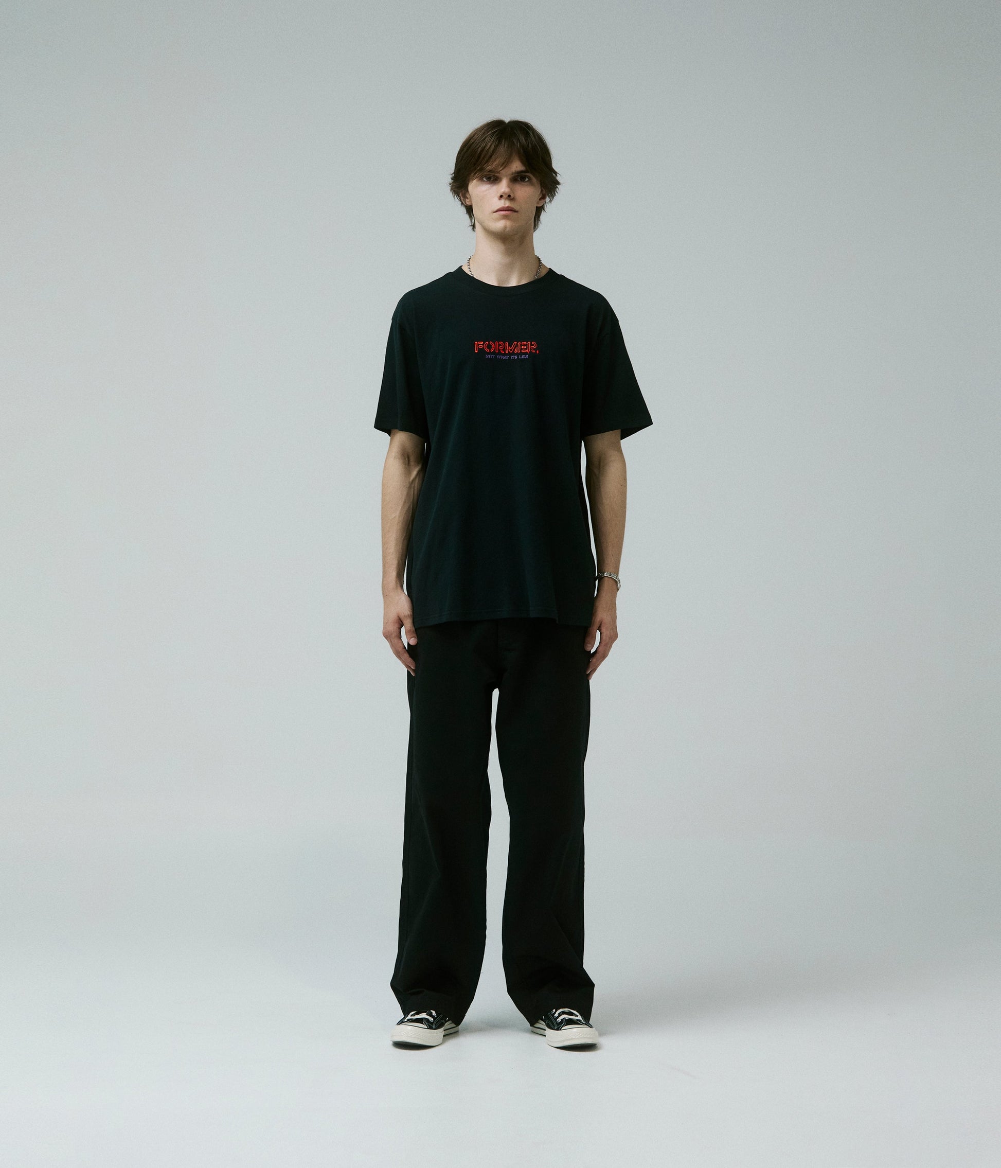 Crafted in a premium 200GSM jersey cotton and delivered in our standard FORMER T-shirt block for a modern and comfortable fit. Featuring front and back graphic embroidery, puff print & soft hand plastisol screen print.