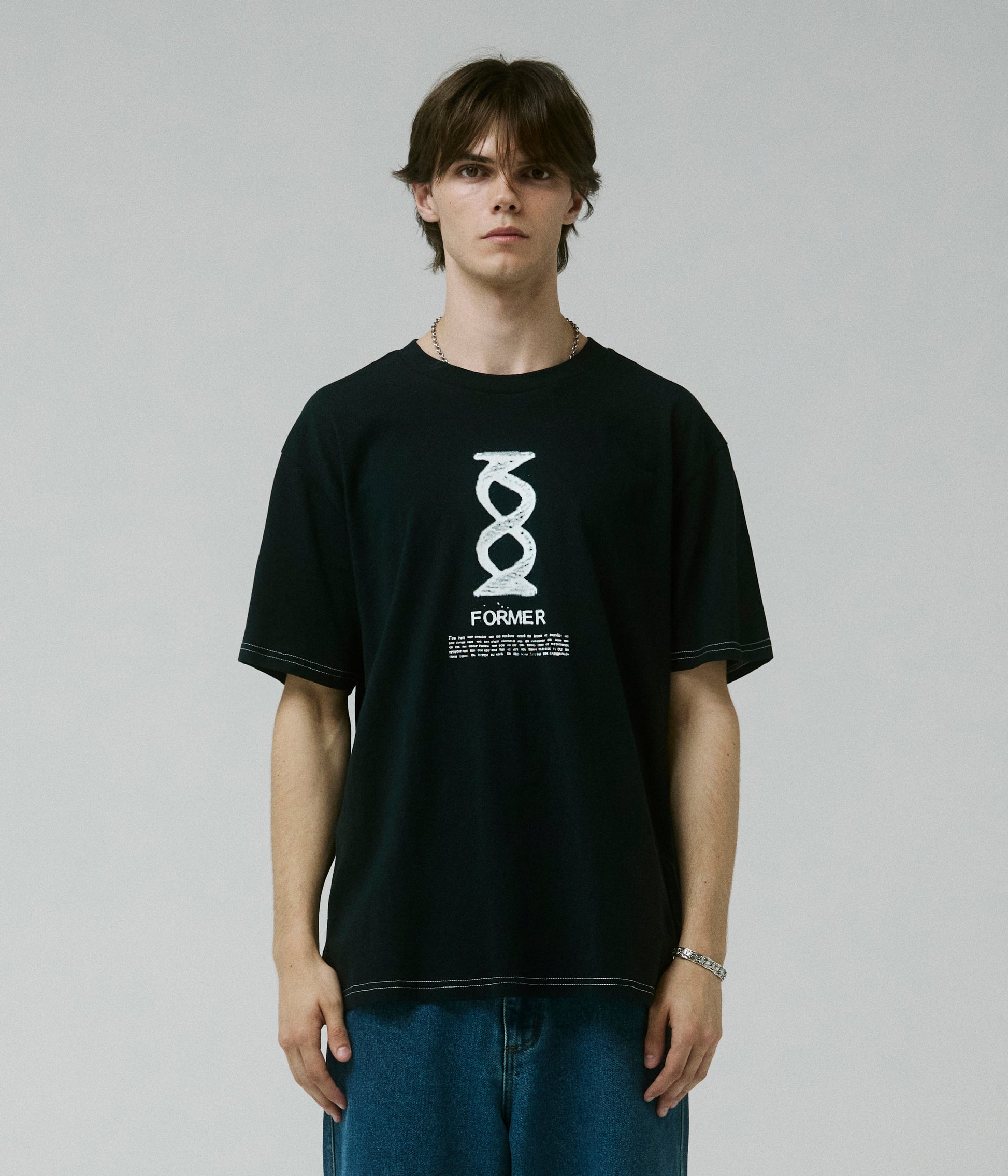 Crafted in a premium 200GSM jersey cotton and delivered in our standard FORMER T-shirt block for a modern and comfortable fit. Featuring front graphic soft hand plastisol screen print complemented by contrast stitch.