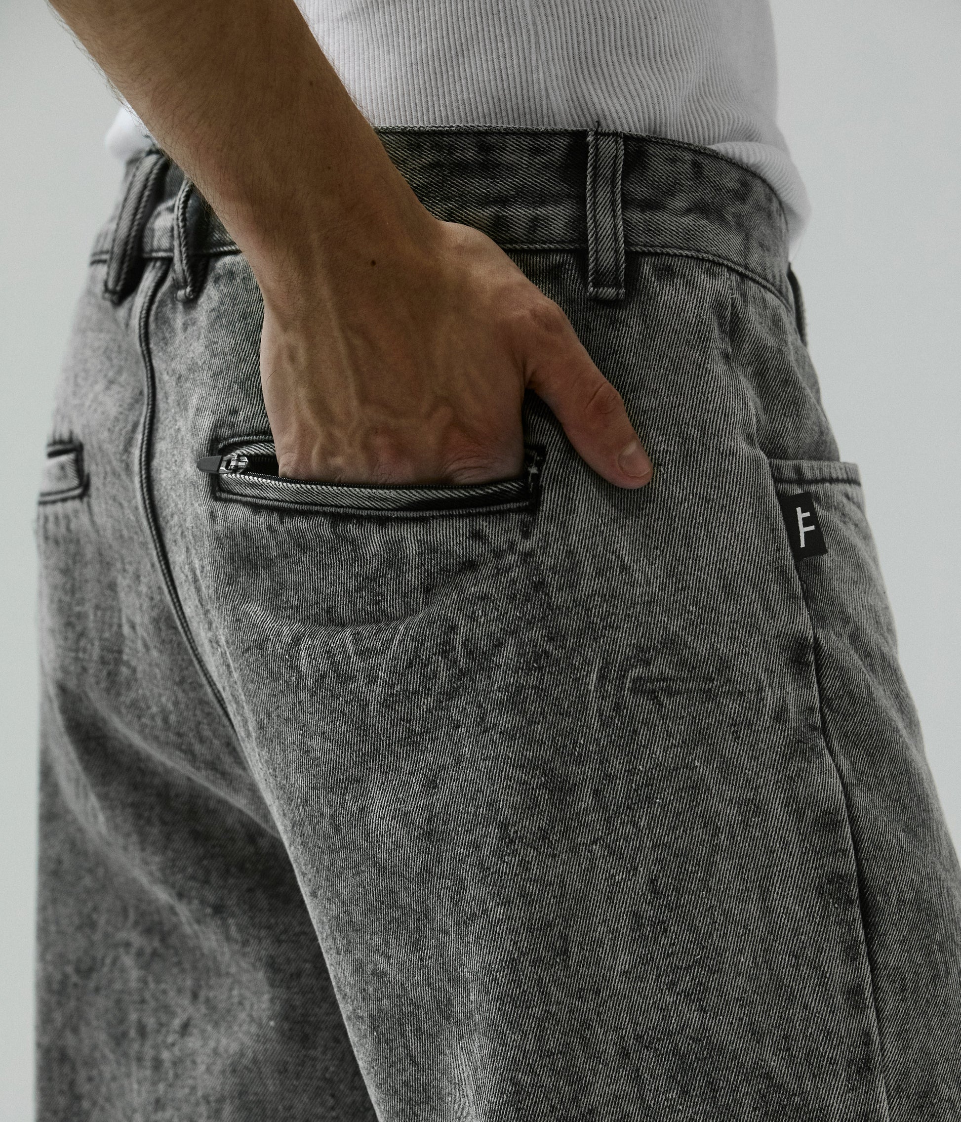 Designed by FORMER founder Austyn Gillette, the AG Acid Denim Pant is constructed from premium 100% cotton acid denim and delivered in our signature AG pant fit with an 18.5" leg opening. Featuring a fixed waist, signature AG flag label in side seam, concealed zip back pocket, button closure back pocket, and FORMER branded metal shank button.