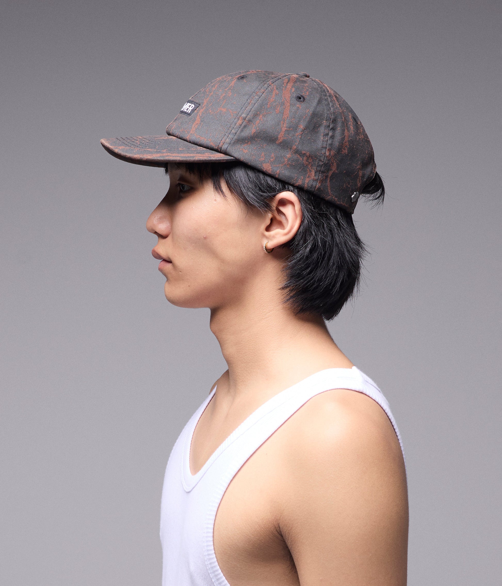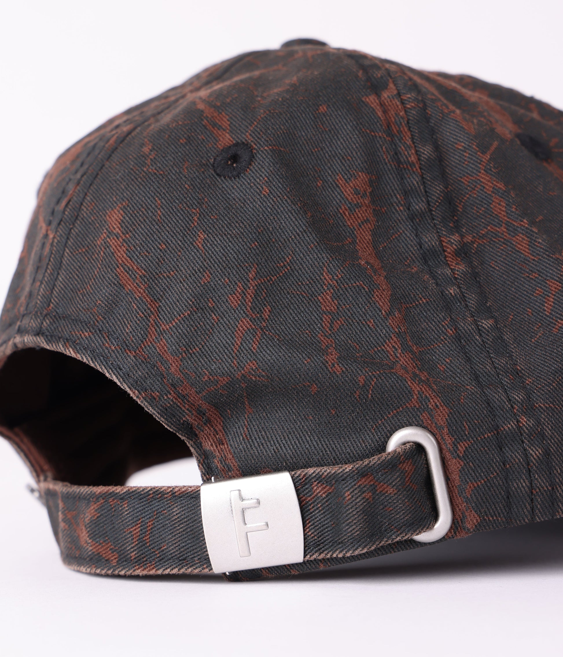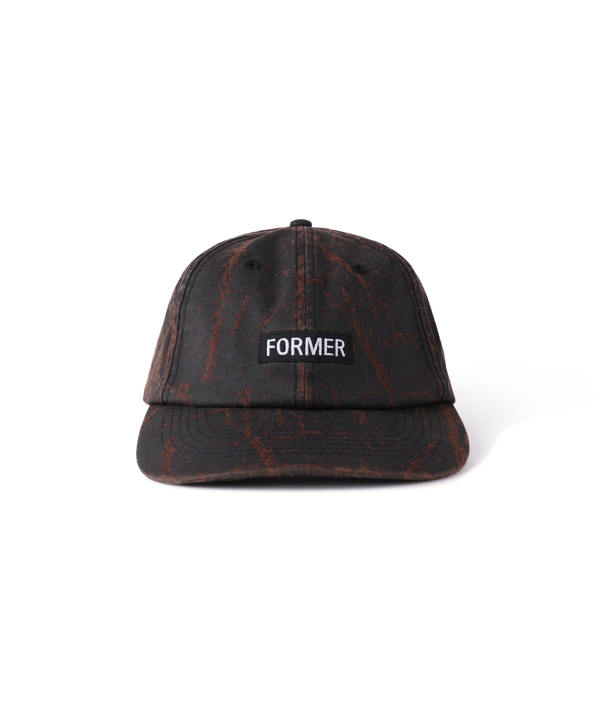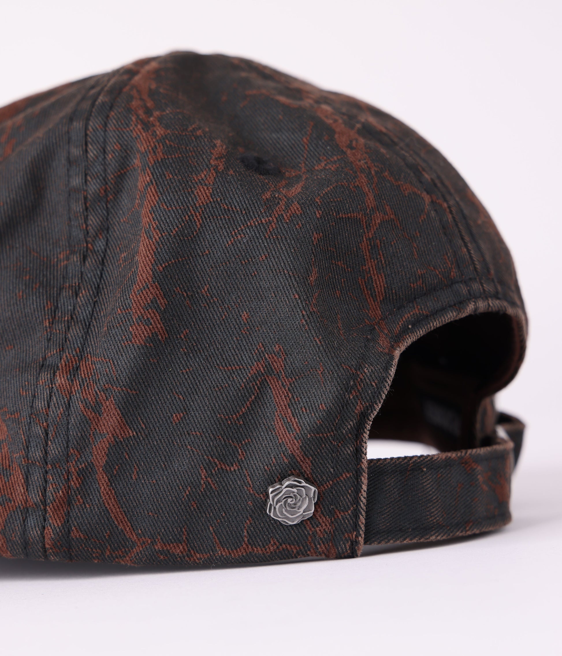 Delivered in a 100% cotton twill in a curve peak 6 panel cap design with a vintage wash finish. Featuring front graphic embroidery, yardage print, Signature FORMER Rose Rivet on Rear of Cap, and metal clasp and O ring closure.