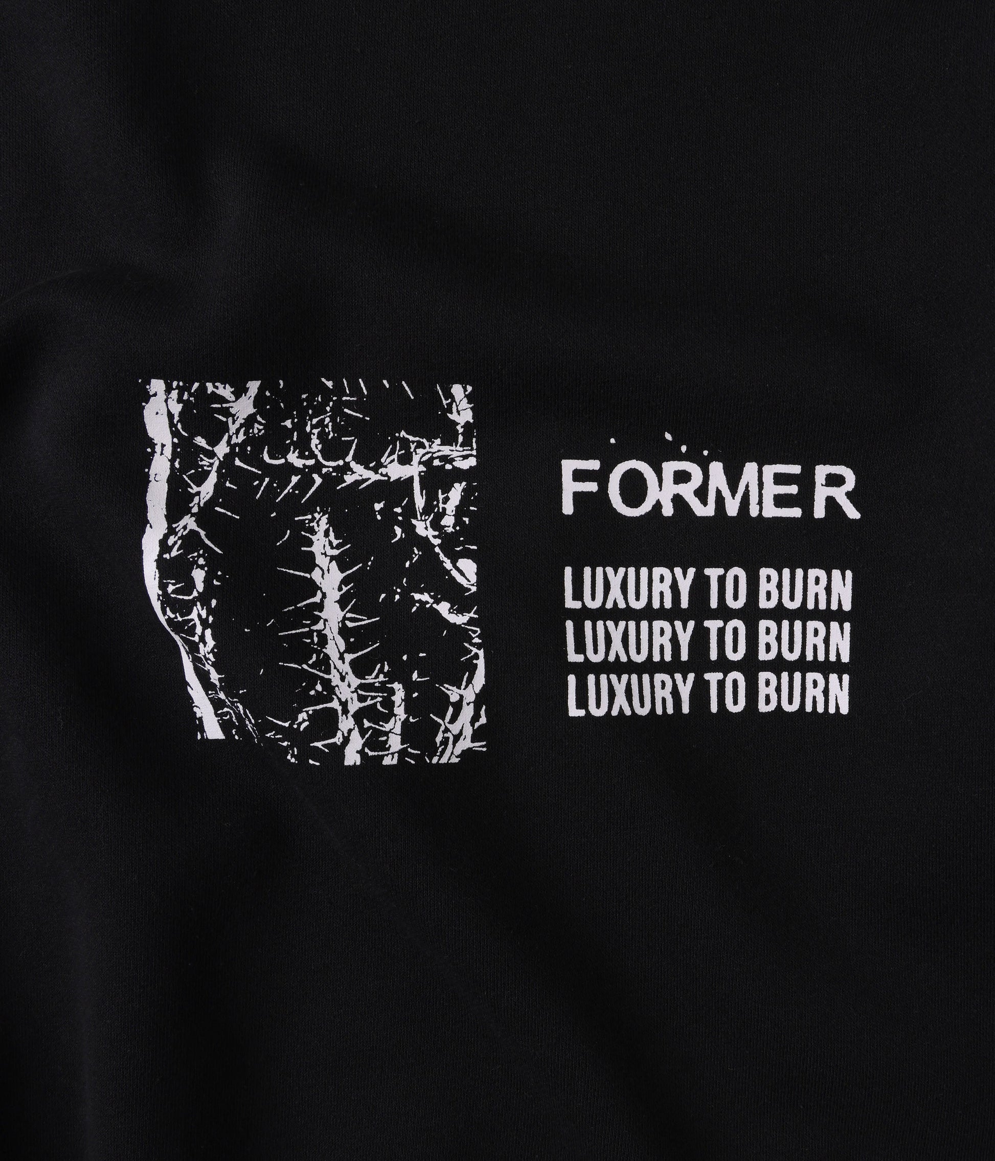Designed in a premium 320GSM cotton brushed fleece for warmth and comfort, and delivered in our standard FORMER Crew fit. Featuring seasonal front, back and sleeve hit graphics in a soft plastisol screen print finish and FORMER logo embroidery on cuff for detail.